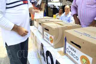CUERNAVACA, MORELOS, 05OCTUBRE2014.- Ciudadanos asistieron a las casillas de votación ubicadas en el zócalo de la ciudad para participar en el referéndum contra el gobernador del Estado, Graco Ramírez, proceso organizado y convocado por la Coordinadora Morelense de Movimientos Ciudadanos (CMMC). FOTO: PATRICIA MORALES /CUARTOSCURO.COM