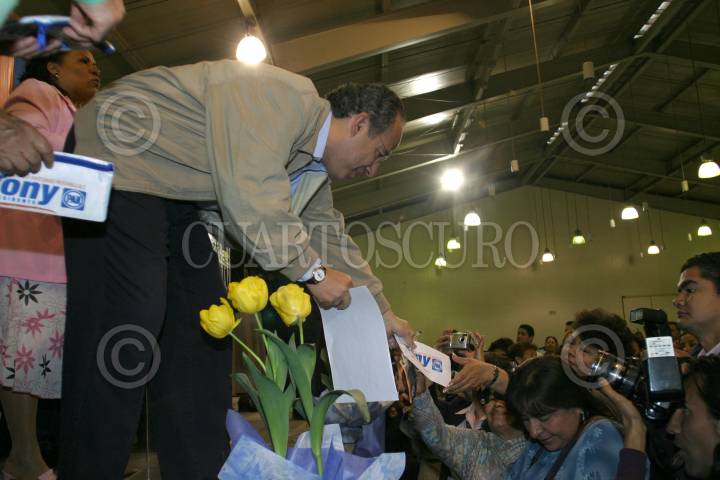 TLALNEPANTLA, ESTADO DE MEXICO 14FEBRERO2006.- Jóvenes muestran pancartas durante el foro Ejercicio Ciudadano del Tecnológico de Monterrey con Felipe Calderón Hinojosa, candidato del PAN a la presidencia de la República. FOTO: Nelly Salas/CUARTOSCURO.COM