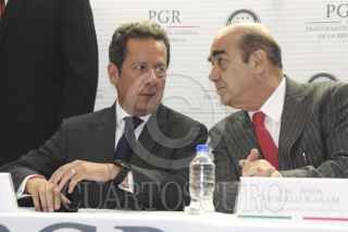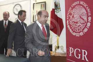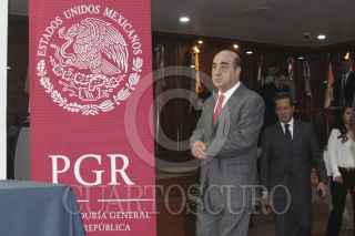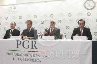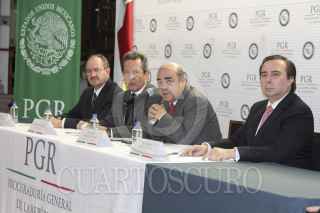 MÉXICO, D.F., 06OCTUBRE2014.- Jesús Muriilo Karam, Procurador General de la República, Tomás Zerón de Lucio, director de la Agencia de Investigación Criminal de la PGR, Eduardo Sánchez, vocero de la presidencia de la república y Rodrigo Archundia Barrientos, titular de la Subprocuraduría Especializada de Investigación en Delincuencia Organizada en conferencia dieron a conocer que el titular de la PGR encabezara al equipo de trabajo para esclarecer el ataque a normalistas en Iguala el pasado 26 de septiembre. FOTO: SAÚL LÓPEZ /CUARTOSCURO.COM