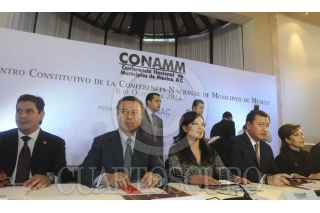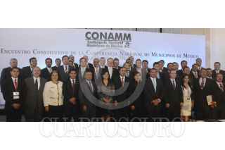 LEON, GUANAJUATO, 06OCTUBRE2014.- Miguel Ángel Osorio Chong acompañado de Cesar Camacho Quiroz, presidente del PRI y Ricardo Anaya, presidente del PAN durante el encuentro de la Conferencia Nacional de Municipios de México (CONAMM). FOTO: CUARTOSCURO.COM