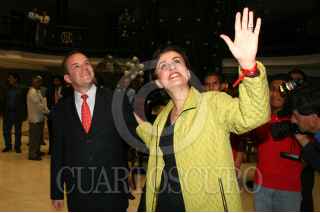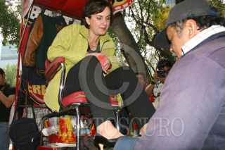 MEXICO D.F. 14FEBRERO2006.- Patricia Mercado, candidata presidencial del partido Alternativa realizo un recorrido por la avenida Reforma, ademas aprovecho para bolear sus zapatos. FOTO: Diego Gallegos/CUARTOSCURO.COM