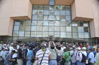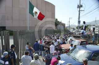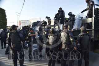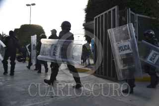 CHILPANCINGO, GUERRERO, 07OCTUBRE2014.- Policías ciudadanos pertenecientes a la Unión de Pueblos y Organizaciones Sociales del Estado de Guerrero UPOEG, desde el lunes por la noche anunciaron que se concentraría frente al congreso para pedir permiso al congreso local para que le prestarán la explanada y organizarse y salir en caravana al municipio de Iguala. Dijeron que van con el objetivo de unirse a las jornadas de búsqueda de los jóvenes estudiantes desaparecidos el pasado 26 Septiembre. Cabe mencionar que policías estatales con equipo antimotines llegaron para resguardar el recinto legislativo. FOTO: JOSÉ I. HERNÁNDEZ /CUARTOSCURO.COM