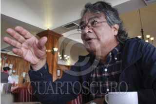 SAN LUIS POTOSÍ, SAN LUIS POTOSÍ, 09OCTUBRE2014.- Pedro Valtierra, director de la Agencia de Fotografía Cuartoscuro, fue entrevistado por el director de la revista ID San Luis, Pablo Méndez, con respecto a su trabajo fotográfico, experiencias y opiniones en torno al fotoperiodismo. FOTO: MARCELO PALACIOS /CUARTOSCURO.COM
