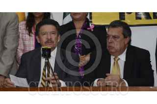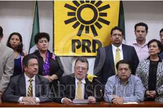 MÉXICO, D.F., 09OCTUBRE2014.- El Comité Ejecutivo Nacional del Partido de la Revolución Democrática encabezado por el presidente nacional, Carlos Navarrete Ruiz, respalda las decisiones políticas del gobernador de Guerrero, Ángel Aguirre, principalmente la exigencia de que policías federales y estatales agilicen la búsqueda y localización de los normalistas de Ayotzinapa. En conferencia de prensa, Navarrete Ruiz agregó que el PRD saluda la propuesta del gobernador de someterse a una consulta popular y que a través de ésta, los guerrerenses sean quienes decidan si le revocan el mandato o no. FOTO: PRD /CUARTOSCURO.COM