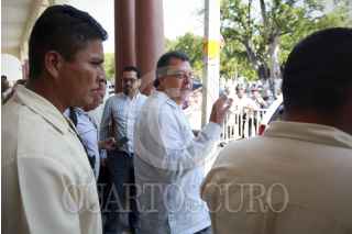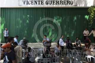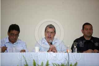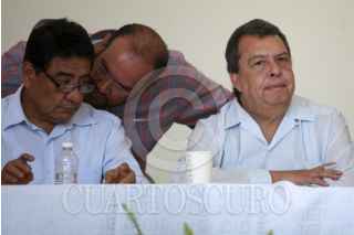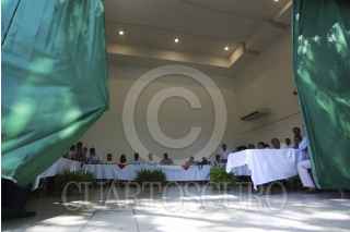 IGUALA, GUERRERO, 11OCTUBRE2014.- El gobernador del estado de Guerrero, Ángel Aguirre Rivero, encabezó una reunión de seguridad para la conformación del programa de atención a víctimas del ataque a normalistas de Ayotzinapa. Al finalizar fue cerrada una cortina para continuar la junta en privado. FOTO: FÉLIX MÁRQUEZ /CUARTOSCURO.COM