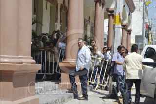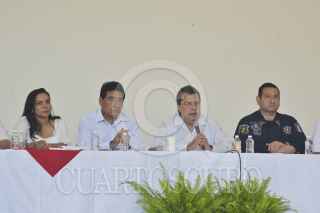 IGUALA, GUERRERO, 11OCTUBRE2014.- El gobernador del estado Ángel Aguirre Rivero sostuvo una reunión con integrantes de su gabinete, en el auditorio Vicente Guerrero en el Museo de la Bandera de esta ciudad, esto para seguir trabajando en dar con el paradero de los normalistas de la escuela rural de Ayotzinapa. En ese sentido el mandatario señalo que había instruido a la Secretaria de Desarrollo Social Beatriz Mojica Morga que sea la responsable de esta comisión también para la atención Integral de las víctimas que fueron afectadas con motivo de los acontecimientos de Iguala. FOTO: JOSÉ I. HERNÁNDEZ /CUARTOSCURO.COM