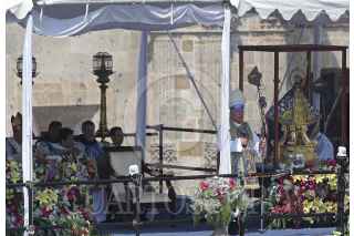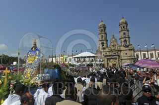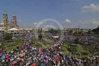 GUADALAJARA, JALISCO, 12OCTUBRE2014.- Como cada año se llevo a cabo la Romería, a la cual acudieron aproximadamente 2 millones de asistentes que acompañaron a La Generala hasta su santuario, la Basílica de Zapopan, el recorrido desde la Catedral metropolitana de Guadalajara hasta la Basílica, fue encabezado por el Arzobispo Emérito, Juan Sandoval Iñiguez, mismo que fue el encargado de oficiar la misa de bienvenida a la Virgen de Zapopan. FOTO: FERNANDO CARRANZA GARCIA /CUARTOSCURO.COM
