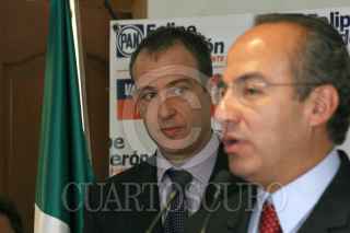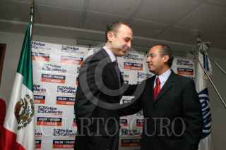 MÉXICO D.F. 20FEBRERO2006.- El candidato presidencial de Acción Nacional, Felipe Calderón, presentó a Arturo Sarukhan, quien será el encargado de la Política Exterior en su gabinete, durante conferencia de prensa en su casa de campaña. FOTO: Diego Gallegos/CUARTOSCURO.COM