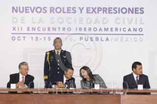 PUEBLA, PUEBLA, 13OCTUBRE2014.- Enrique Peña Nieto, presidente de México, acompañado por el gobernador de Puebla, Rafael Moreno Valle, realizó la inauguración del XII Encuentro Iberoamericano "Nuevos Roles y Expresiones de la Sociedad Civil" realizado en el Centro Expositor de la ciudad de Puebla. FOTO: HILDA RÍOS /CUARTOSCURO.COM
