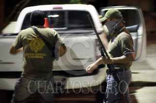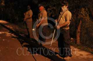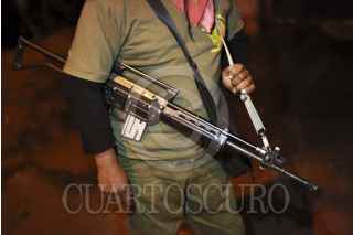 AYOTZINAPA, GUERRERO., 14OCTUBRE2014.- Policías Comunitarios de la organización CRAC refuerzan la vigilancia en las instalaciones de la Escuela Normal Rural "Raúl Isidro Burgos" de Ayotzinapa, Guerrero. Los autodefensas han implementado operativos de seguridad en las inmediaciones del colegio y puntos de revisión para localizar a los 43 estudiantes desaparecidos. FOTO: FÉLIX MÁRQUEZ / CUARTOSCURO.COM
