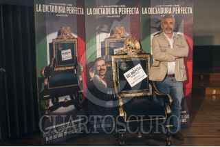 MÉXICO, D.F., 14OCTUBRE2014.- El director Luis Estrada posa para los fotógrafos, durante la conferencia de prensa de la presentación de la película "La Dictadura Perfecta, la cual se estrena este 16 de octubre en mil 200 salas cinematográficas. FOTO: ISAAC ESQUIVEL /CUARTOSCURO.COM