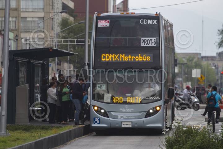 MÉXICO, D.F., 14OCTUBRE2014.- El metrobús se dos pisos está siendo probado en la línea 4. Éste tiene capacidad para trasladar a 100 pasajeros: 80 sentados y 20 de pie. FOTO: IVÁN STEPHENS /CUARTOSCURO.COM