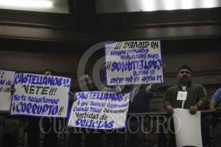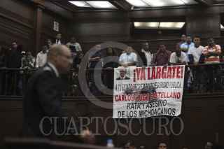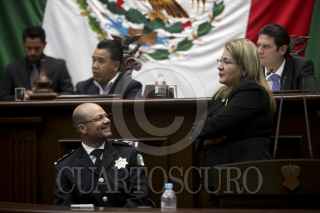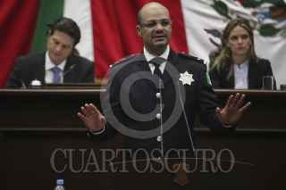 MORELIA, MICHOACÁN, 14OCTUBRE2014.- El Secretario de Seguridad Publica del estado, Carlos Hugo Castellanos, compareció este martes ente el pleno del Congreso del Estado, para darles a conocer a los legisladores los avances en esta materia en la entidad. En el recinto estuvieron presentes la mayoría de los diputados locales y se apresuró el fin de la comparecencia por el posible arribó de estudiantes normalistas al recinto legislativo. FOTO: ALAN ORTEGA / CUARTOSCURO.COM