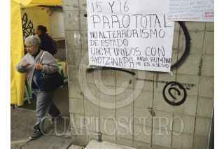 MÉXICO, D.F., 15OCTUBRE2014.- Estudiantes de la Universidad Autónoma de la Ciudad de México (UACM), plantel Centro Histórico, se sumaron al paro que convocaron varias universidades del país en solidaridad con los 43 normalistas de Ayotzinapa, Guerrero, desaparecidos desde el pasado 26 de septiembre. FOTO: DIEGO SIMÓN SÁNCHEZ /CUARTOSCURO.COM