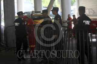 MONTERREY, NUEVO LEÓN, 15OCTUBRE2014.- En medio de un fuerte dispositivo de seguridad que abarcó los alrededores del Congreso del Estado y varias cuadras aledañas y donde se restringió el acceso al peatón en toda la zona para evitar protestas, el gobernador del estado Rodrigo Medina de la Cruz entregó el 5to. informe de gobierno. FOTO: GABRIELA PÉREZ MONTIEL /CUARTOSCURO.COM