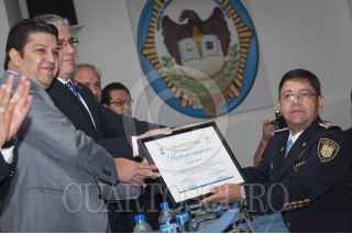 MÉXICO, D.F., 16OCTUBRE2014.- Policías Auxiliares de la Secretaría de Seguridad Pública durante la entrega de un reconocimiento que otorgó el Instituto de Acceso a la Información Pública y Protección de Datos Personales del Distrito Federal (INFODF) a la Policía Auxiliar, para agradecer el Desempeño Sobresaliente en los trabajos de capacitación 2013 por parte de dicho instituto. FOTO: DIEGO SIMÓN SÁNCHEZ /CUARTOSCURO.COM