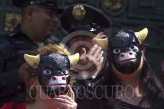 MÉXICO, D.F., 16OCTUBRE2014.- Un grupo de personas se manifesto a las afueras de la Asamblea Legislativa para pedir la abolicion de las corridas de toros en la ciudad. FOTO: ENRIQUE ORDÓÑEZ /CUARTOSCURO.COM