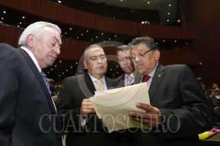MÉXICO, D.F., 16OCTUBRE2014.- Los diputados Marco Antonio Bernal, Manlio Fabio Beltrones, Mario Sánchez Ruiz y Miguel Alonso Raya, durante la sesión en la Cámara de Diputados. FOTO: CUARTOSCURO.COM