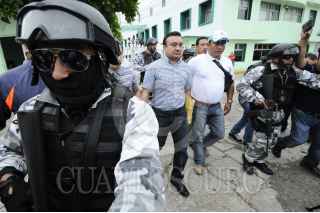 VILLAHERMOSA, TABASCO, 17OCTUBRE2014.- Martín Medina Sonda, socio y presunto ‘lavador’ de dinero del ex secretario de Administración y Finanzas de Tabasco, José Manuel Sáiz Pineda, arribó esta mañana a las instalaciones de la de la Procuraduría General de Justicia (PGJ), tras ser detenido en Cancún, Quintana Roo. Se prevé que en el transcurso de la mañana será trasladado al Centro de Reinserción Social del Estado (Creset) para responder sobre el delito de sustracción de menores. FOTO: CUARTOSCURO.COM