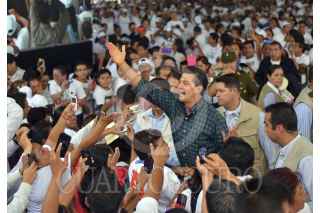 POZA RICA, VERACRUZ, 20OCTUBRE2014.-Enrique Peña Nieto, presidente de México, encabezó el evento “Sin Hambre Veracruz Prospera" donde tomó protesta a brigadistas de la Cruzada Nacional Contra el Hambre y a vocales del Programa PROSPERA. FOTO: PRESIDENCIA /CUARTOSCURO.COM