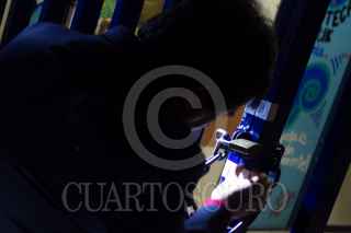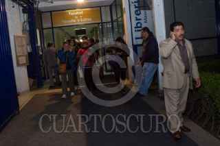 MEXICO, D.F., 21OCTUBRE2014.- Autoridades de la Facultad de Filosofía y Letras colocaron sellos en aulas y puertas y posteriormente entregaron las instalaciones del plantel a los alumnos para unirse al paro de 48 horas convocado en apoyo a las manifestaciones que exigen la aparición con vida de los 43 normalistas de Ayotzinapa, secuestrados en Iguala el pasado 26 de septiembre. En la imagen, un administrativo coloca un sello en uno de los accesos a la Facultad. FOTO: DAVID POLO /CUARTOSCURO.COM