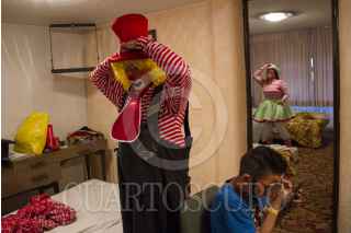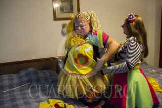 MÉXICO, D.F., 22OCTUBRE2014.- La payaso "Mechitas" procedente de Costa Rica se prepara en su habitación de hotel para acudir a la Décima Novena Convención Internacional de Payasos Latinos que tiene lugar en el Teatro de la República. FOTO: IVÁN STEPHENS /CUARTOSCURO.COM