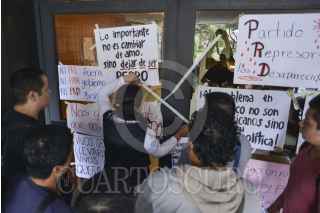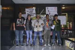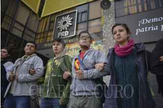 MÉXICO, D.F., 22OCTUBRE2014.- Estudiantes de la Faculta de Ciencias Políticas y Sociales de la UNAM, tomaron de manera simbólica el edificio del Comité Ejecutivo Nacional del Partido de la Revolución Democrática, en demanda de la aparición con vida de los 43 estudiantes normalistas de Ayotzinapa, como parte de las actividades de lucha de las diferentes universidades en el país. FOTO: ADOLFO VLADIMIR /CUARTOSCURO.COM