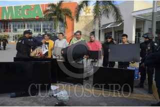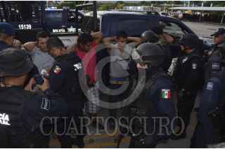 IGUALA, GUERRERO, 22OCTUBRE2014.- Cinco personas fueron detenidas por personal de la Policía Federal por su probable responsabilidad en saquear la Plaza Tamarindos. FOTO: BERNANDINO HERNÁNDEZ /CUARTOSCURO.COM