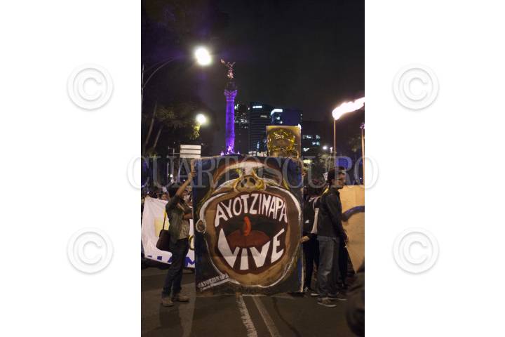 MÉXICO, D.F, 22OCTUBRE2014.- Con antorchas, miles de estudiantes de instituciones educativas privadas y públicas del país se manifestaron del Ángel al zócalo capitalino para exigir la presentación con vida de los 43 estudiantes desaparecidos de la Normal Rural de Ayotzinapa, Guerrero. FOTO: GUILLERMO PEREA /CUARTOSCURO.COM