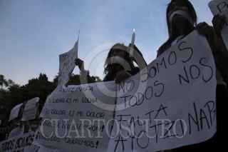 CUERNAVACA, MORELOS, 22OCTUBRE2014.- Un grupo de alumnos de la Universidad Autónoma del Estado de Morelos (UAEM) realizó una marcha del silencio por la paz a la que llamaron "Todos somos memoria". En la ofrenda de víctimas de Palacio de Gobierno, colocaron pancantas y velas, en las rejas de la entrada colocaron moños blancos como símbolo de paz. FOTO: PATRICIA MORALES /CUARTOSCURO.COM