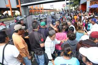 MÉXICO D.F. 23OCTUBRE2014.- Granaderos de la SSPDF retiraron a comerciantes semi-fijos del metro Villa de Cortes que bloquearon la Calzada de Tlalpan exigiendo que les dejen vender en la vía publica. Los inconformes mencionaron que todos los comerciantes pagan 2500 pesos a la delegación para que los dejen vender. FOTO: SAÚL LÓPEZ / CUARTOSCURO.COM