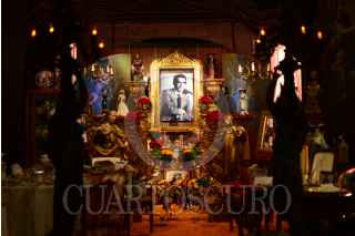 MÉXICO, D.F.,23OCTUBRE2014.- El día de hoy se inauguro uno de los altares de muertos que el barrio de San Ángel dedicara a grandes genios en estas fechas de día de muertos. El Museo del Carmen brindo el homenaje a Guillermo Tovar de Teresa quien murió el pasado 10 de noviembre. Familiares y amigos asistieron al evento para recordar con honor al historiador y cronista emérito de la Ciudad de México. FOTO: ISABEL MATEOS /CUARTOSCURO.COM