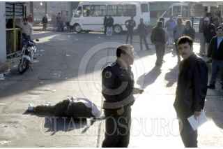 MÉXICO D.F. 21FEBRERO2006.- Fué encontrado un sujeto, que murió a puñaladas y golpes, en uno de los andenes de los microbuses del metro Pantitlan, se presume que cuatro sujetos lo asesinaron. FOTO: Pedro Marrufo/CUARTOSCURO.COM