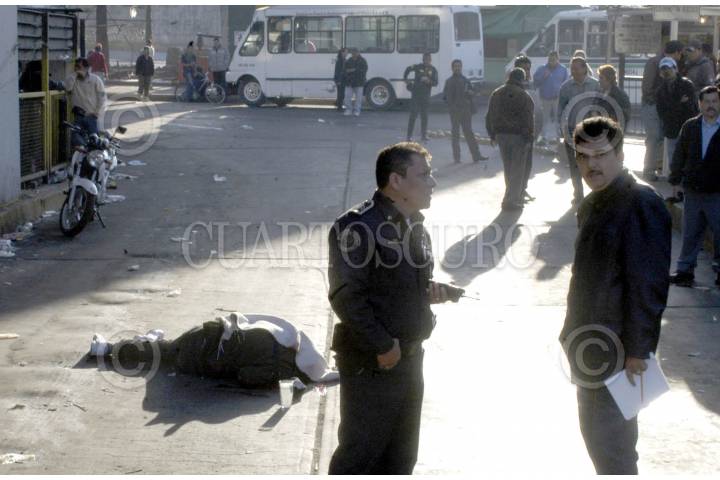 MÉXICO D.F. 21FEBRERO2006.- Fué encontrado un sujeto, que murió a puñaladas y golpes, en uno de los andenes de los microbuses del metro Pantitlan, se presume que cuatro sujetos lo asesinaron. FOTO: Pedro Marrufo/CUARTOSCURO.COM
