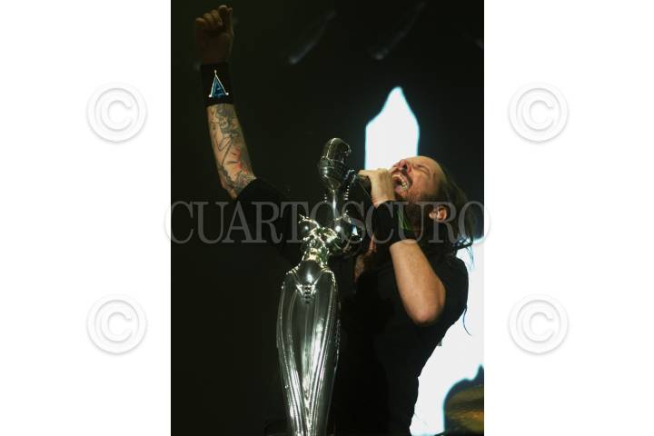 MÉXICO, D.F., 25OCTUBRE2014.- Korn se presentó en uno de los escenarios principales. El festival de rock y metal Hell and Heaven, el cual iba a realizarse originalmente en Texcoco y suspendió sus actividades debido a la falta de condiciones de seguridad, inició esta tarde en el Autódromo Hermanos Rodríguez. Fanáticos del metal acudieron al festival que reunirá, entre otros, a grupos como Kiss; Limp Bizkit y Rob Zombie. FOTO: MARÍA JOSÉ MARTÍNEZ /CUARTOSCURO.COM