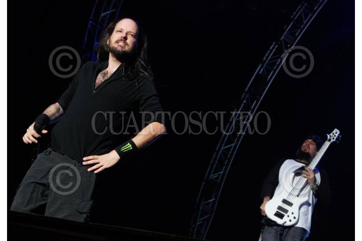 MÉXICO, D.F., 25OCTUBRE2014.- Korn se presentó en uno de los escenarios principales. El festival de rock y metal Hell and Heaven, el cual iba a realizarse originalmente en Texcoco y suspendió sus actividades debido a la falta de condiciones de seguridad, inició esta tarde en el Autódromo Hermanos Rodríguez. Fanáticos del metal acudieron al festival que reunirá, entre otros, a grupos como Kiss; Limp Bizkit y Rob Zombie. FOTO: MARÍA JOSÉ MARTÍNEZ /CUARTOSCURO.COM