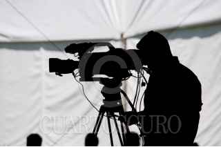 MÉXICO, D.F., 29OCTUBRE2014.- Contraluz de un camarógrafo de prensa que realiza su trabajo durante el 1er Encuentro de Economía Social en México. FOTO: DIEGO SIMÓN SÁNCHEZ /CUARTOSCURO.COM