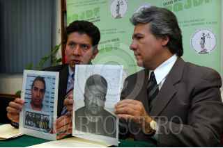MEXICO D.F. 22FEBRERO2006.- En conferencia de prensa, el fiscal German Garcia Beltran y el sub procurador Salomon Baltazar Samayoa de la PGJDF dieron a conocer la detencion de Alfonso Mejia Coyotzin, miembro de la banda de asaltantes a residencias de lujo "Pepe la preciosa" donde resultarón afectados artistas y politicos. FOTO: Pedro Marrufo/CUARTOSCURO.COM