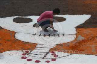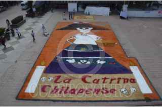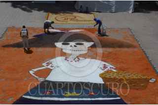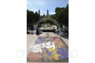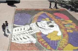 CHILAPA, GUERRERO, 31OCTUBRE2014.- En pleno zócalo de Chilapa elaboraron dos imágenes monumentales de la Catrina por el festejo del Día de Muertos. FOTO: BERNANDINO HERNÁNDEZ /CUARTOSCURO.COM
