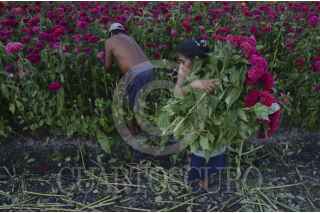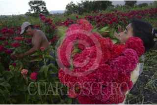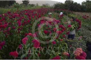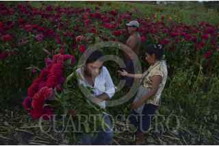 TIXTLA, GUERRERO, 31OCTUBRE2014.- El señor Fernando Martínez, la señora María Santillan y sus hijos Esther y Samuel, todos los años de su vida en estas fechan cortan y venden la flor de Día de Muertos. Fernando y María como matrimonio llevan ya 33 años juntos dedicados a la producción de la flor de muertos. La familia Santillan Martínez trabajan cortando las flores de Día de muertos que sembraron en agosto y que están pensando vender antes del 2 de noviembre en el mercado de Tixtla. Este año no sembraron mucha flor, sólo lo hicieron en media hectárea. Pero también les preocupa poder venderla toda, porque este año serán muchos los productores son muchos y los visitantes son pocos. “Antes venían más, de la Costa Chica, se venían a comprar la flor, ahora con estás cosas (con la inseguridad) ya no vienen tanto, Los que vienen son de aquí de comunidades y de Chilpancingo”, lamenta la señora María. Doña María comento que su padre había conocido a Lucio Cabañas y a Jenaro Vázquez quienes trabajaban en sus tierras. FOTO: BERNANDINO HERNÁNDEZ /CUARTOSCURO.COM