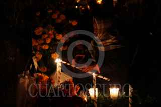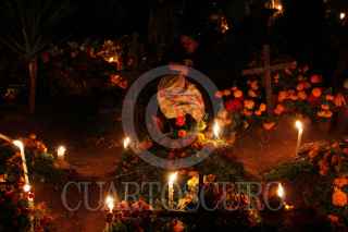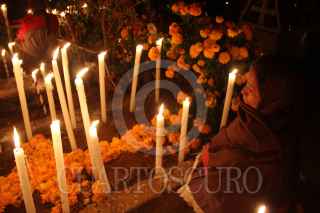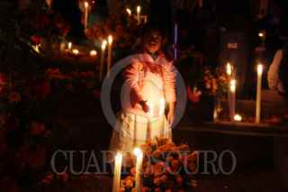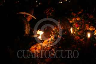 SANTA MARÍA ATZOMPA, OAXACA, 31OCTUBRE2014.- Tal y como marca la tradición, pobladores de Santa María Atzompa adornan las tumbas de sus familiares con flor de cempasúchil y velas, esto con la intensión de alumbrar el camino para que los fieles difuntos puedan visitar el mundo de los vivos. FOTO: ARTURO PÉREZ ALFONSO /CUARTOSCURO.COM