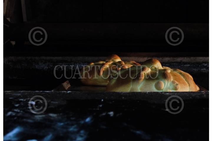 MÉXICO, D.F., 01NOVIEMBRE2014.- La panadería La Vasconia, fundada en 1870, es considerada la más antigua de la ciudad. El equipo de panaderos, comandado por el maestro Dionisio quien se dedica al oficio desde hace 30 años, trabaja desde ayer y hasta hoy en la madrugada para sacar los pedidos de pan de muerto solicitados por la centena de clientes en estas fechas de Día de Muertos. A una temperatura de 210 grados, centígrados las decenas de charolas de pan de muerto se hornear en promedio de 30 minutos. Levadura, esencia de azahar, mantequilla, manteca, huevos, harina, leche y azúcar son los ingredientes de esta tradicional receta. El proceso de elaboración del pan es casi artesanal, excepto por la utilización de la batidora y revolvedora. FOTO: MARÍA JOSÉ MARTÍNEZ /CUARTOSCURO.COM