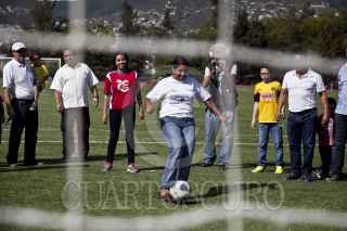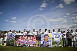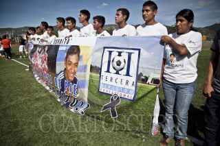 CHILPANCINGO,GUERRERO 01NOVIEMBRE2014.- Rogelio Ortega Martínez gobernador interino de guerrero acudió al estadio de los Avispones de Chilpancingo, donde la directiva del equipo acompañado de familiares, rindieron homenaje al jugador Josué David Evangelista el cual, perdió la vida en los ataques ocurridos a los normalistas en iguala. FOTO: RASHIDE FRIAS / CUARTOSCURO.COM