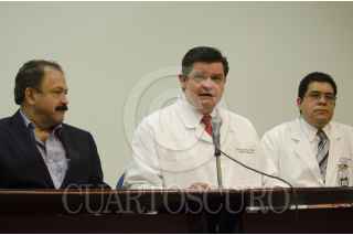 MÉXICO,D.F, 01NOVIEMBRE2014.- El personal médico de la Unidad de Cardiología del Hospital ABC unidad Observatorio dio lectura a un comunicado en donde detalló la situación médica en la que se encuentra el mandatario capitalino, Miguel Ángel Mancera, quien evoluciona de manera satisfactoria. El secretario de salud del Distrito Federal, Armando Ahued Ortega, estuvo presente durante la conferencia, sin embargo no dirigió ningún mensaje. Al término de la conferencia el jefe de gobierno se comunicó vía teléfono celular en donde dio cuenta de su estado de salud satisfactorio. FOTO: MARÍA JOSÉ MARTÍNEZ /CUARTOSCURO.COM