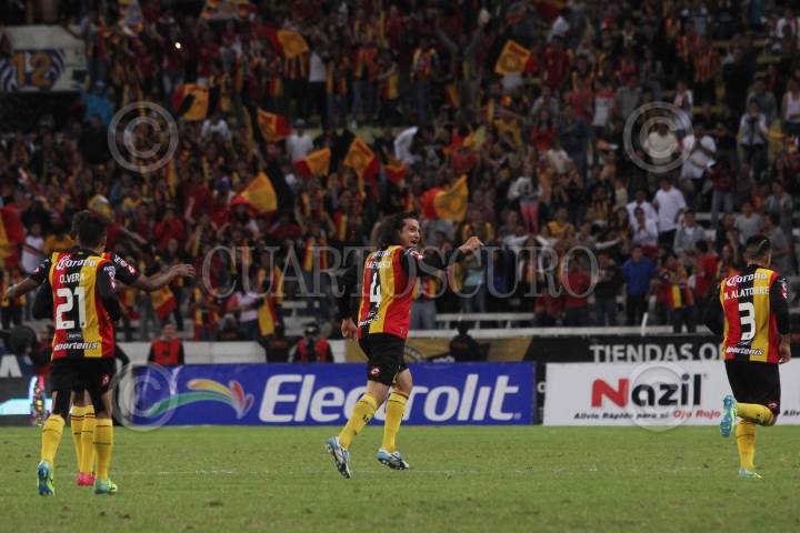 GUADALAJARA, JALISCO, 01NOVIEMBRE2014.- Esta noche en el Estadio Jalisco y en partido correspondiente a la Jornada 15 del Torneo Apertura 2014 de la Liga MX, se enfrentan los equipos de los Leones Negros de la Universidad de Guadalajara frente a Santos Laguna de Torreón. En la imagen el jugador de Leones Negros Héctor Reynoso celebra su anotación. FOTO: FERNANDO CARRANZA GARCIA /CUARTOSCURO.COM