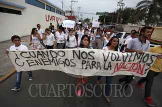 BOCA DEL RÍO, VERACRUZ, 03NOVIEMBRE2014.- Estudiantes de diversas facultades particulares de la Universidad del Valle de México y Universidad Villa Rica marcharon por calles de Boca del Río para solidarizarse y exigir el regreso de los 43 normalistas de Ayotzinapa. FOTO: FÉLIX MÁRQUEZ /CUARTOSCURO.COM