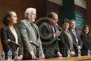 MEXICO, D.F., 04NOVIEMBRE2014.- En el Museo Tecnológico de la CFE se inaguró el V Seminario Internacional Vías Verdes México, en el cual de compartirán experiencias nacionales e internacionales en el manejo sustentable de los espacios públicos. En la imagen, Saúl Juarez, titular de la Secretaría Cultural y Artística de Conaculta toma la palabra,a su izquierda se encuentra Gilbert Perrin, presidente de la Asociación Europea de Vias Verdes. FOTO: DIEGO SIMÓN SÁNCHEZ /CUARTOSCURO.COM