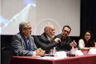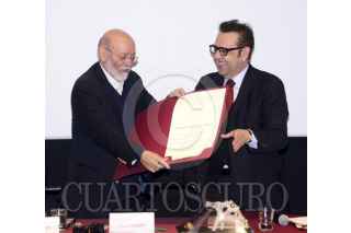 MÉXICO, D.F., 04NOVIEMBRE2014.- El arqueólogo Eduardo Matos Moctezuma fue objeto de un reconocimiento al inicio hoy del ciclo de conferencias "70 años de investigación arqueológica en Tlatelolco", que se celebra en el auditorio Jesús Terán del ExColegio de la Santa Cruz Tlatelolco, donde continuará hasta el 7 de noviembre. El diploma le fue entregado por César Moheno, secretario técnico del Instituto Nacional de Antropolgía e Historia (INAH), por una vida dedicada a la arqueología. FOTO: INAH/ MAURICIO MARAT /CUARTOSCURO.COM