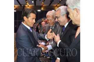 MÉXICO, D.F., 05NOVIEMBRE2014.- Ante expresidentes de varios países reunidos en la Sesión Plenaria 2014 del Consejo Nacional de BANORTE, el Primer Mandatario, Enrique Peña Nieto expresó que los resultados acumulados en el tiempo son los que distinguen a los países más desarrollados, y si queremos que México sea uno de ellos, los esfuerzos nacionales deben sostenerse más allá de una Administración. En la imagen el Jefe del Ejecutivo saluda Felipe González, ex Presidente de España y a Ernesto Zedillo Ponce de León, ex Presidente de México. FOTO: PRESIDENCIA /CUARTOSCURO.COM