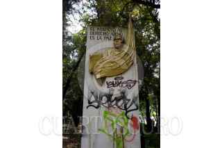 08NOVIEMBRE2014.- "El respeto al derecho ajeno es la Paz" dijo el Presidente Benito Juarez. En el parque que lleva el nombre del poeta Zacatecano Ramón López Velarde, Antonio M. Anza, Av. Cuauhtémoc y Huatabampo de la colonia Roma. En el busto de El Benemérito de las Américas, D.F., entre las calles Orizaba, frente al Centro Médico Siglo XXI, se encuentra este sábado así. FOTO: PEDRO VALTIERRA /CUARTOSCURO.COM